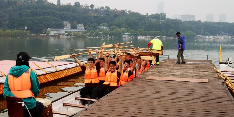 11月1日清晨,南京玄武湖公园人头攒动、加油助威声此起彼伏,热闹非凡,PA视讯官方网站第十二届研究生龙舟赛在此拉开帷幕。本次龙舟赛共有包括公司代表队、公司和淮阴工公司联合培养研究生代表队,共计21支队伍角逐院际对抗赛。龙舟赛开幕式从一首旅行团的《永远都会在》点燃现场,各参赛代表队在主席台前一字排开,认真观看了本次开幕式。PA视讯官方网站党委副书记吴胜红老师致词,宣布第十二届研究生龙舟赛开幕。