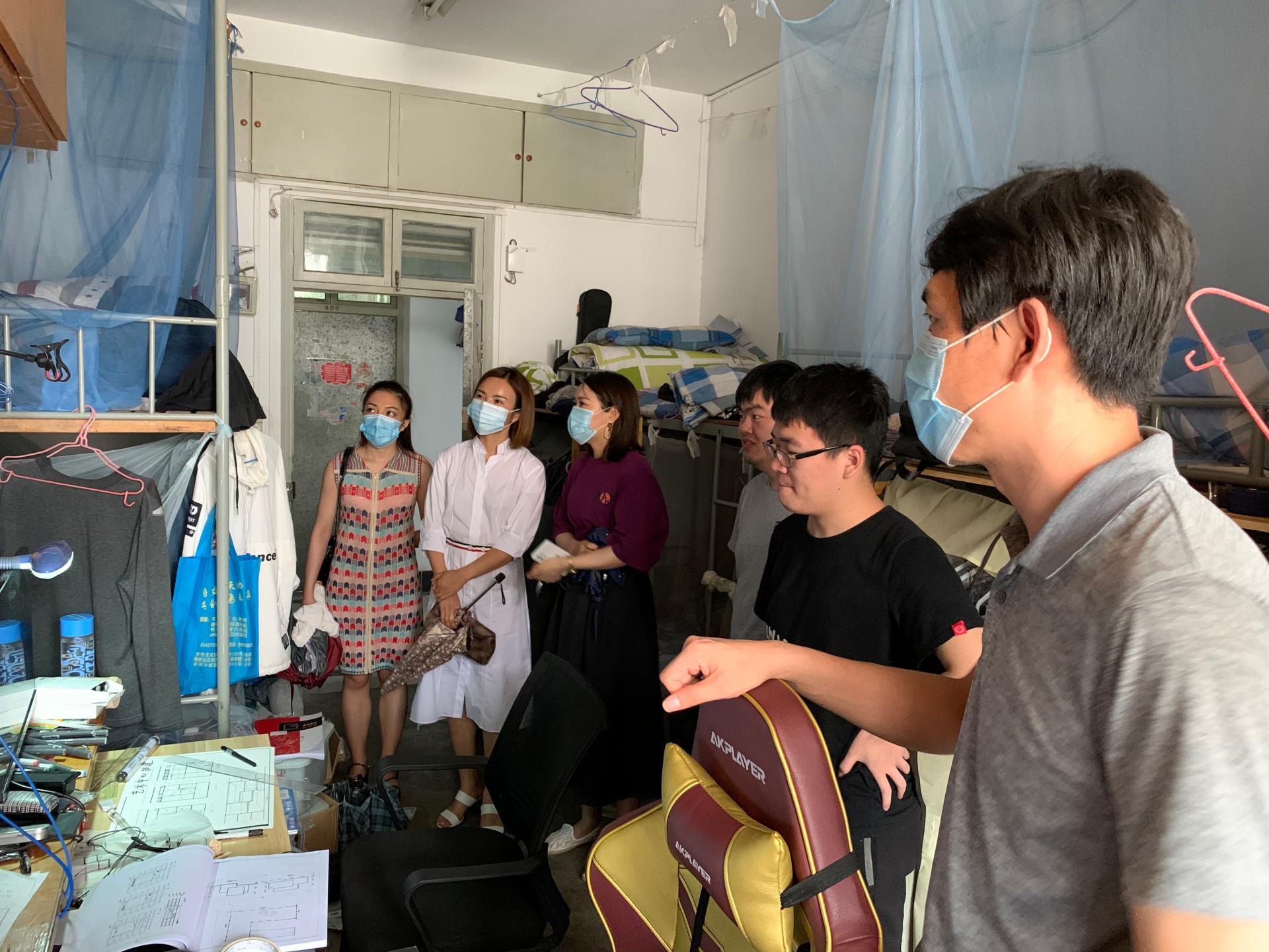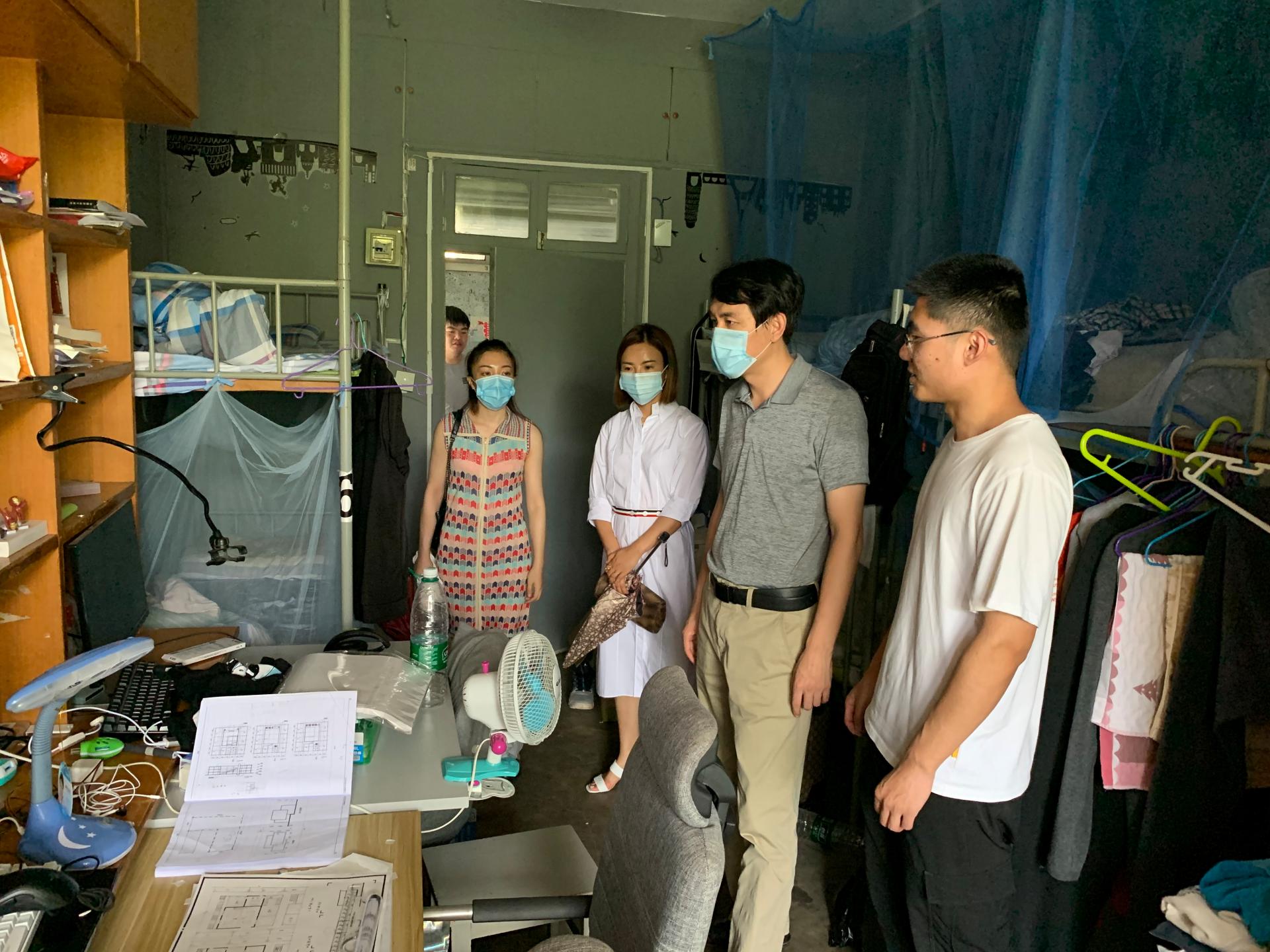 2020年7月10日,PA视讯党委副书记徐源、员工事务办公室主任林宁、院团委副书记张清扬、辅导员管苏、王伟杰等老师,来到江浦校区员工宿舍,看望了暑假期间留校住宿的同学,为他们送上了亲切的关怀。