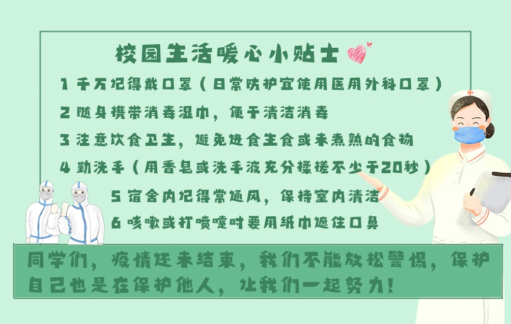 为帮助员工养成良好卫生习惯、做好疫情防护,帮助返校员工尽快适应疫情防控期间校园生活,PA视讯开展了“小小贴士,情暖校园”活动,通过员工自己创作设计的小贴士,弘扬正能量,传递温暖。