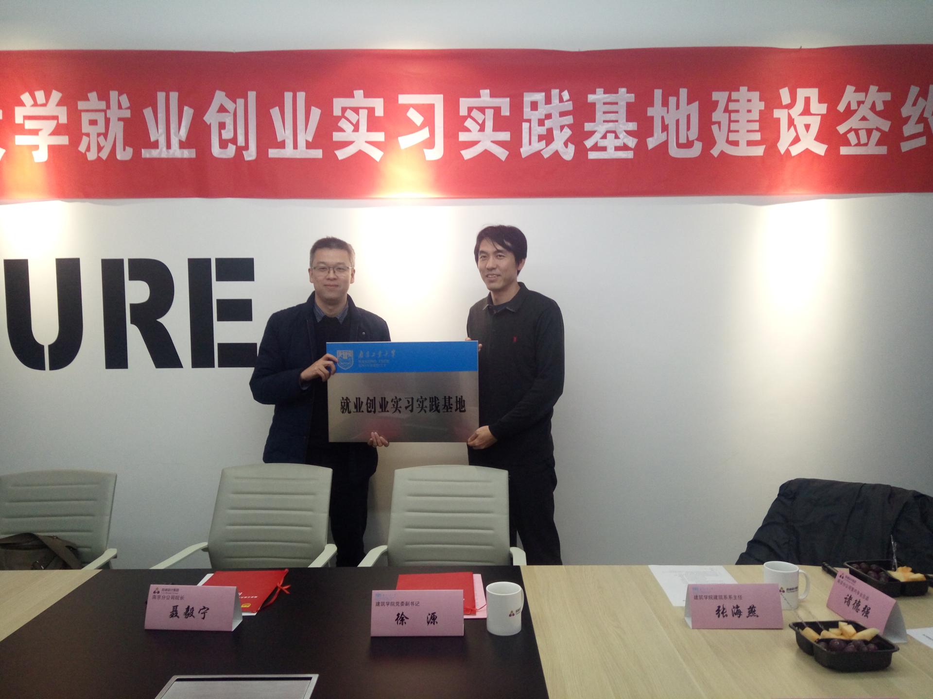 2019年12月3日下午,PA视讯经理胡振宇、党委副书记徐源、建筑系主任张海燕、建筑造型实验室主任周立、学办主任林宁等一行到启迪设计集团股份有限公司南京分公司,举行PA视讯官方网站就业创业实习实践基地签约挂牌仪式。启迪设计集团股份有限公司执行总裁靳建华、行政中心总经理陆志刚,南京分公司经理聂毅宁、行政总经理徐敏皓、建筑专业总监施展、张楷、室内专业总监诸德强等出席了仪式。