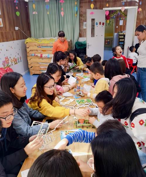 活动伊始,党员们热情弹唱了歌曲《大手拉小手》,向孩子们传递关爱与呵护,得到了孩子们真诚而热烈的掌声。随后,在党员们精心耐心的展示和指导下,孩子们展示出对建筑模型的浓厚兴趣,积极参与,非常出色地完成了一个个建筑模型的搭建。看到自己完成的精美作品,孩子们备受鼓舞,同时也赢得了在场老师的热烈掌声。最后,党员们和孩子一起分享了带来的糖果、曲奇饼干和毛绒玩具等爱心物品,祝愿这里的自闭症小朋友们在康复过程中,能够收获更多快乐,更加健康茁壮地成长。