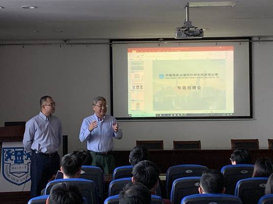 讲座伊始,经理胡振宇发言,对中建上海院行政部总监林钰麒一行的到来表示热烈欢迎,希望同学们认真聆听、学习经验、踊跃发言,在毕业季努力锤炼本领,锻炼专业技能,将来为中国建筑的发展贡献力量。