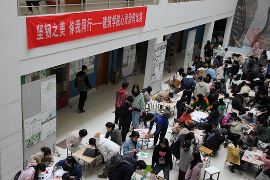 天地山河,落日孤帆,亦或是校园中的一草一木,都出现在了同学们灵巧的笔下,无不彰显建院学子扎实的绘画基础和细腻的内心情感。同学们三五成群围坐在风筝旁,水彩水粉马克笔彩铅等绘画工具悉数亮相,同学们互相配合,共同勾画出自己心中对“坚韧之美”的理解。活动一直持续到中午,期间前来参观欣赏的同学络绎不绝,各班心理委员对作品进行打分,同学们纷纷表示参加涂鸦活动非常有趣,很有意义。