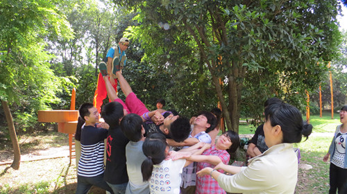 早上九点整,素质拓展正式拉开序幕。活动伊始,拓展教练朱老师强调了本次素质拓展的主题为“挑战自我,熔炼团队”。随后,朱老师通过“给自己起个外号”、“灵魂出窍”等环节让同学们在轻松的氛围中相互熟悉,进一步拉近了同学间的距离,同时通过游戏告诫同学们,作为一个整体,每个人都应该以集体的利益为主,多为他人着想。第二部分是“信任背摔”环节,在拓展教练的指导下,整个班级的同学们团结一致,组成人墙保护队友,通过大声的相互鼓励,发自内心的相信队友,来克服内心的恐惧。最后两个部分是“荒岛求生”和“求生墙”环节。在“荒岛求生”中,每组按照角色设定及任务书的内容来完成游戏,游戏中,大家必须信任对方,服从指令,严遵规则才能冲关成功。“求生墙”的游戏则是培养了团队中所有同学们同心协力,共同谋划的能力,在经历了简单尝试后,20位同学一鼓作气取得成功,整个过程中,大家通过分享与总结,使得团队意识进一步体现,使得个人的果敢和抗压能力都得到了很好的磨砺与提高。活动结束后,大家还沉浸在活动的快乐与友好的气氛之中,部分同学对素质拓展场地里的“攀岩墙”产生了浓厚的兴趣,在拓展教练的热心帮助下,几位同学成功登顶。