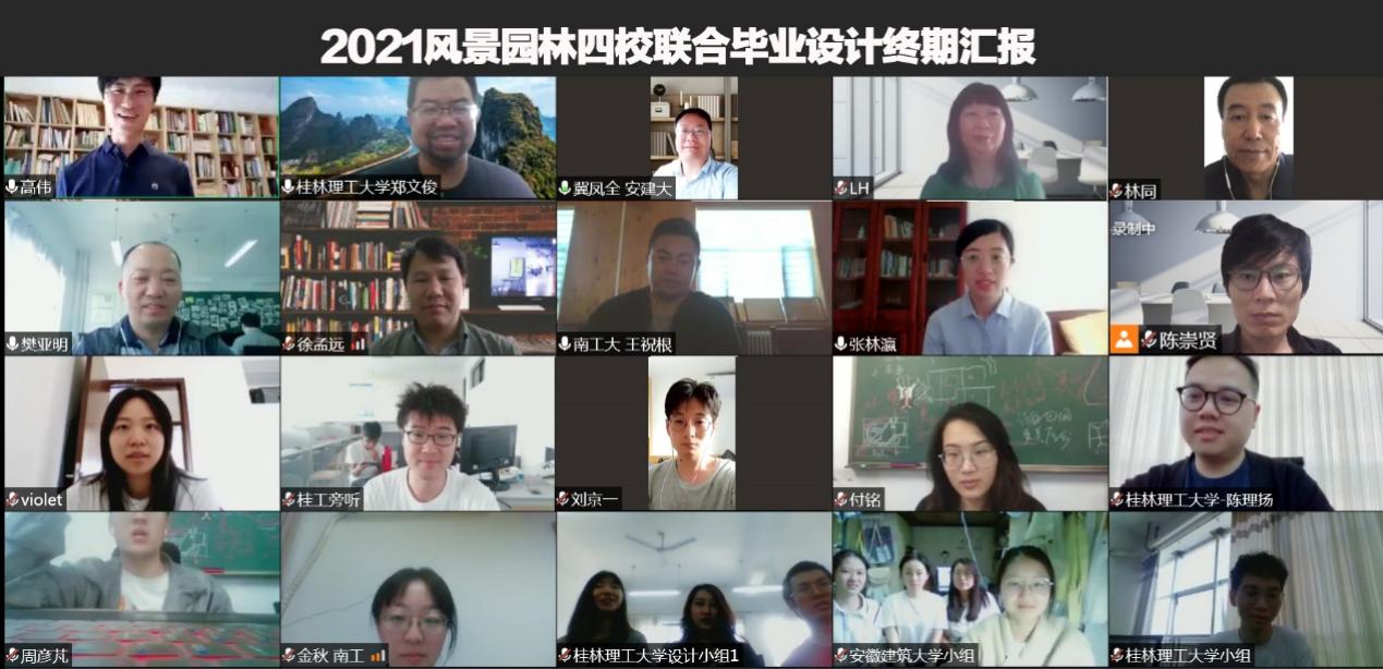 5月26日,安徽建筑大学、桂林理工大学、PA视讯官方网站、华南农业大学2021年四校风景园林专业联合毕业设计终期汇报在线上成功举行。