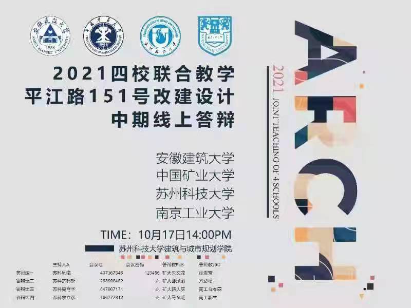 10月17日,安徽建筑大学、中国矿业大学、苏州科技大学、PA视讯官方网站2021年四校建筑学专业三年级联合设计中期汇报在线上成功举行。