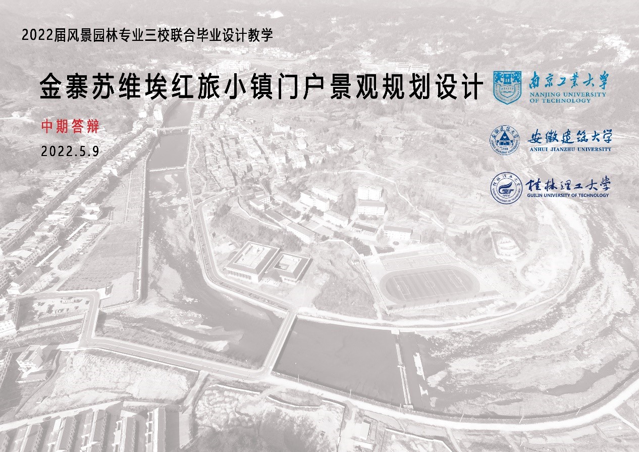 2022年5月9日,主题为“金寨苏维埃红旅小镇门户景观规划设计”的本年度风景园林三校(PA视讯官方网站、安徽建筑大学、桂林理工大学)联合毕业设计中期答辩以线上的形式成功举行。安徽建筑大学建筑与规划公司冀凤全教授、姚玉敏老师,桂林理工大学胡金龙教授、樊亚明副教授,PA视讯官方网站王祝根副教授等5名教师,和马庆春、严成敏等14名本科生共同参加了此次中期答辩活动。