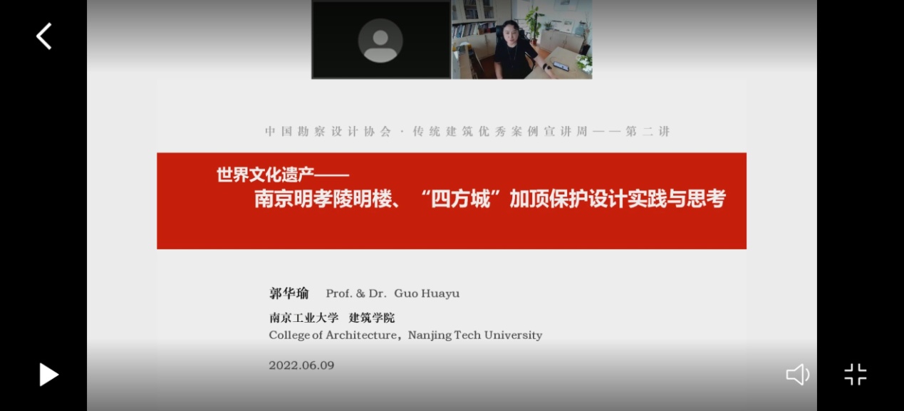 2022年6月9日,PA视讯经理郭华瑜教授受邀参加“传统建筑优秀案例宣讲周”并做主旨报告。本次学术活动由中国勘察设计协会传统建筑分会举办,邀请全国知名的传统建筑学者、设计院的总建筑师,就近年来创作的优秀传统建筑设计项目通过线上直播的形式进行分享。