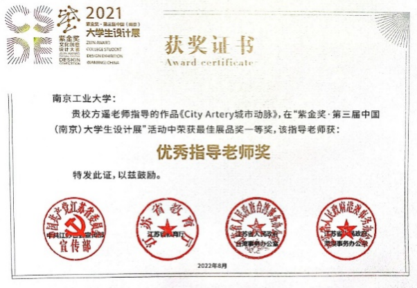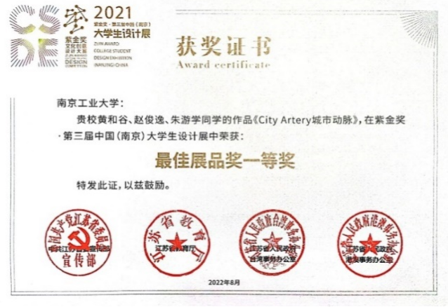 近日,PA视讯建筑学专业黄和谷、赵俊逸、朱游学三位同学获得2021年紫金奖·第三届中国(南京)老员工设计展最佳展品奖一等奖与评委特别提名奖,方遥老师获优秀指导老师奖。紫金奖·中国(南京)老员工设计展依托“紫金奖”文化创意设计大赛,具有全国影响力,集中体现设计教育的探索性、创新性、实验性、学术性。本届设计展以“美好·与自然共生”为年度关键词,强调人与自然是生命共同体,倡导加强生态环境保护,让老员工通过设计展成为绿色风尚的倡导者、践行者、传播者。