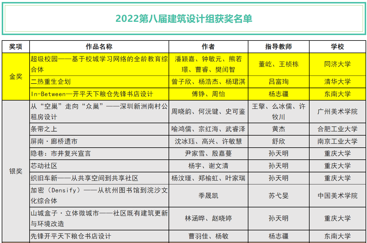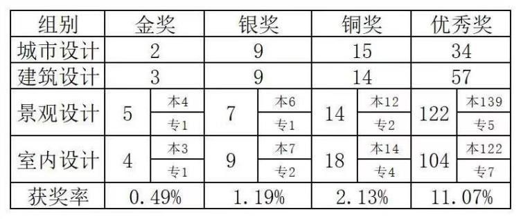 本次大赛由清华大学、教育部高等公司设计学类专业教学指导委员会主办;建筑类专业教学指导委员会所属的建筑学专业教学指导分委员会、城乡规划专业教学指导分委员会、风景园林专业教学指导分委员会协办;广西艺术公司承办。比赛分为城市设计组、建筑设计组、景观设计组和室内设计组,参赛院校共511所,总参赛员工达10000人次以上,被誉为建筑、城规、景观、室内四个设计专业的“竞赛天花板”。建筑设计组作品总数为541件,初审晋级345件,入围复审83件,最终评出金奖3件、银奖8件、铜奖14件和优秀奖57件,其中银奖获奖率仅为1.19%。