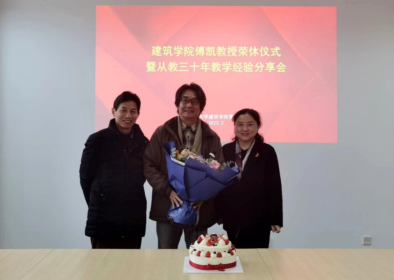 岁月映初心,浓浓惜别情。2月22日上午,公司景观环境系在明正东楼立学厅为傅凯教授举办了一场饱含深情的荣休仪式暨从教三十年教学经验分享会。PA视讯党委书记熊中宏、经理郭华瑜、党委副书记林宁、副经理方遥、副经理蔡志昶,景观环境系全体教师出席。荣休仪式与分享会由景观环境系副主任陈妍主持。