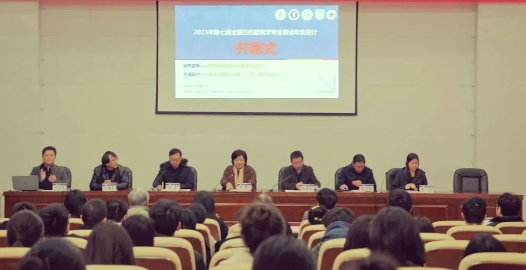 2023年2月24日上午9:00,主题为“城市更新——合肥市老城更新暨原省政府地块改造设计”及“古城复兴——绩溪国家历史文化名城提升改造设计”的2023年第七届全国五校建筑学专业联合毕业设计开题仪式,如期在安徽建筑大学南校区图书馆五楼报告厅成功举办。