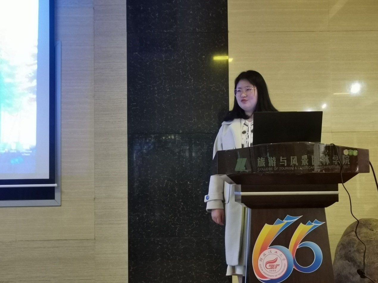 图3 公司风景园林2019级本科生程方同学在学术沙龙上汇报调研工作