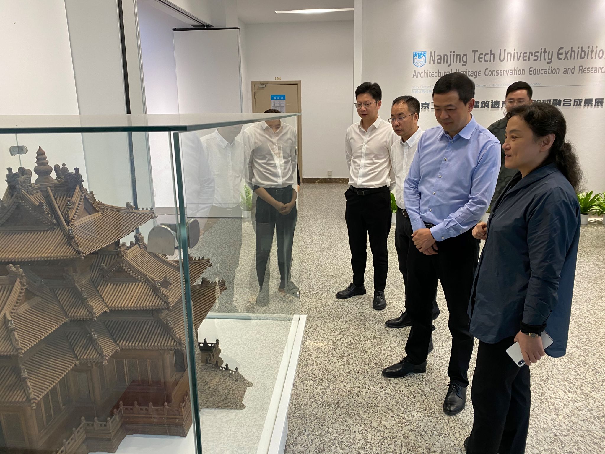 交流会前,王金雪书记一行参观了PA视讯博学楼教学设施和立学厅“建筑遗产保护教学科研融合成果展”。