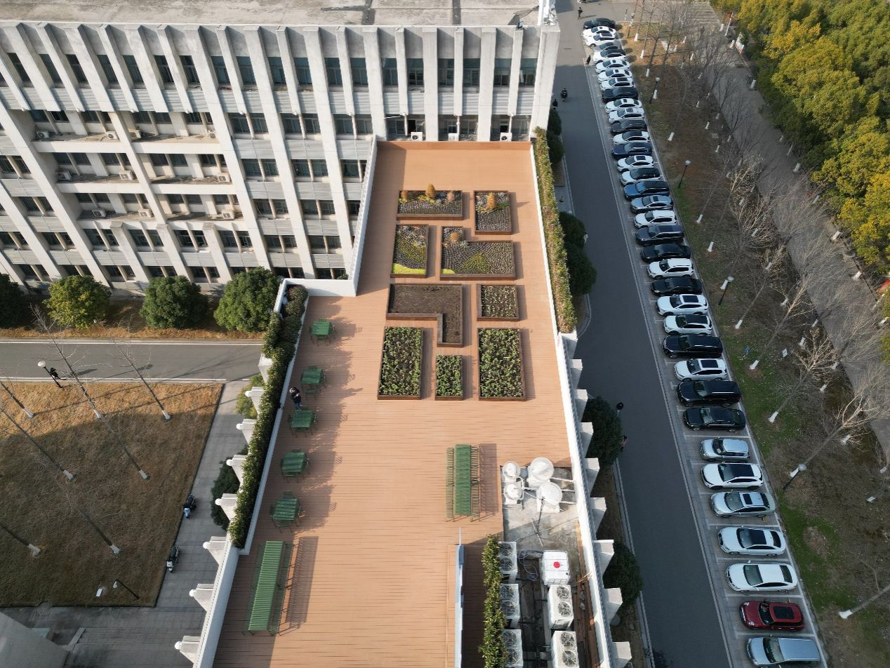 在博学楼屋顶辟一处学习交流的文化基地,是该校师生一直以来的夙愿。去年年底,在PA视讯师生前期共同的设计和谋划下,历时三个月的建筑施工,屋顶花园项目终于在克服了荷载、材料的使用、植被的选择和后期养护规划等难题后,与全校师生“见面了”。
