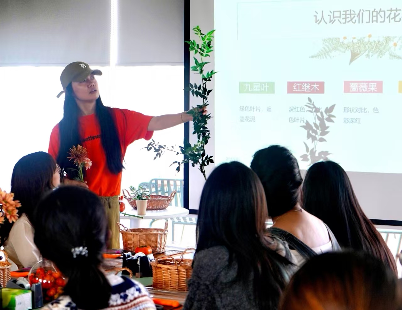 课程观摩开始前,PA视讯经理郭华瑜介绍了屋顶花园的美育、劳育基地建设宗旨,对以往的课程实践做了简要介绍。随后,风景园林专业劳动实践课程负责人陈妍老师详细介绍了本次课程的教学目的及具体内容,并邀请课程共建者、城规系的吴怡音老师以“秋日”为主题,为大家带来了一堂花艺课程,引导同学们通过花艺创作切身体验秋日之美和实践体验。