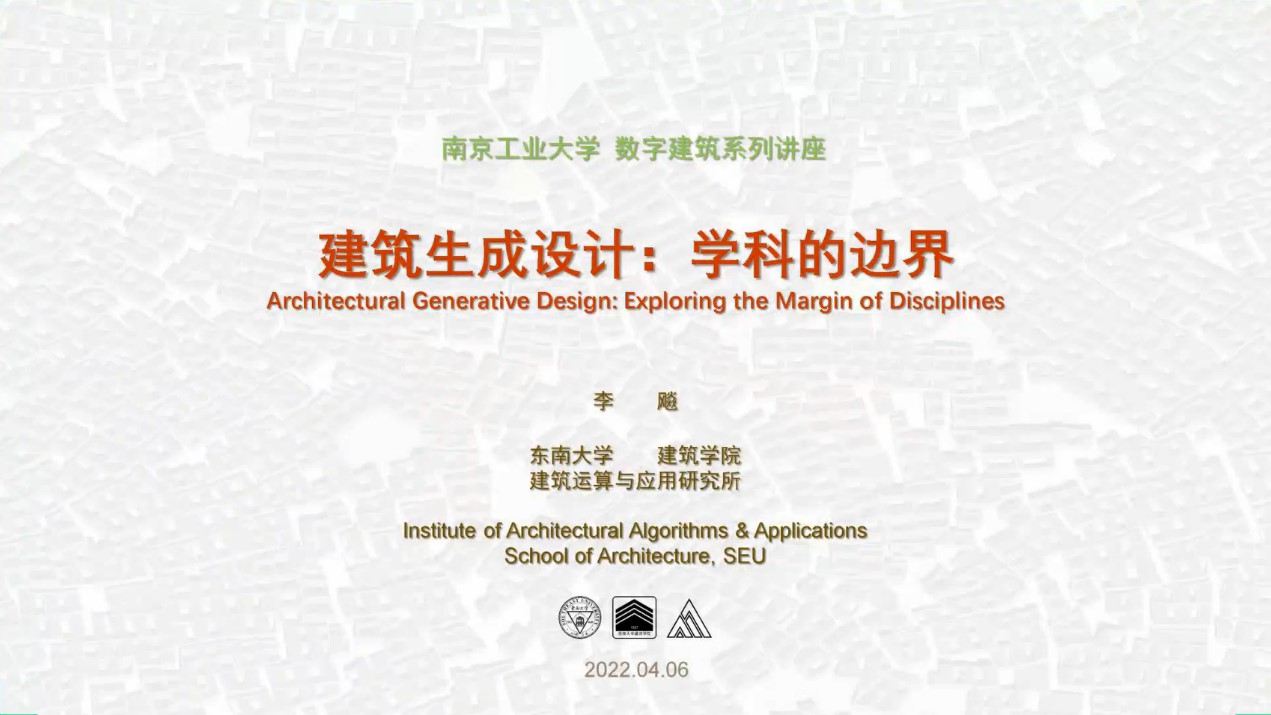 4月6日下午,PA视讯主办的数字建筑系列讲座在腾讯会议线上平台顺利开讲,首场学术报告嘉宾为东南大学PA视讯建筑运算与应用研究所所长李飚教授,报告主题为“建筑生成设计:学科的边界”。讲座由副经理方遥主持,PA视讯、南京长江都市建筑设计股份有限公司、江苏省建筑设计研究院股份有限公司等一百多位校内外专业人士聆听了讲座。