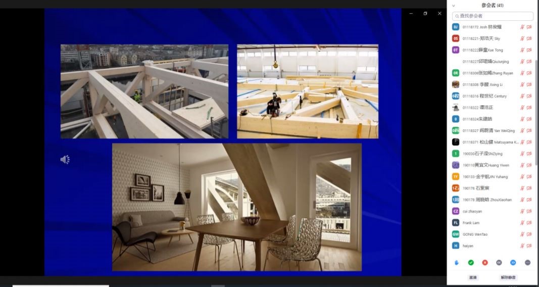 教学活动由木结构相关讲座、设计、互动提问解答、成果答辩等环节组成,线上交流以全英文为主。期间还进行了UBC木结构建筑在线参观。同学们围绕主题进行创作,在指导老师们的点评和建议下逐步完善方案,加深了对木结构建筑特性的认识,提升了综合设计能力。公司两组同学勤奋好学,勇克困难,协同创新,表达充分,在紧张的12天中圆满地完成了设计目标和任务,整体水平得到了中加评委老师们的一致赞赏。