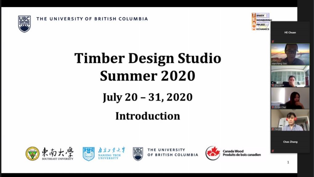 由加拿大英属哥伦比亚大学(UBC)、东南大学和PA视讯官方网站联合举办,加拿大木业协会协办的中加国际在线木结构设计营(Timber Structure Studio)自2020年7月20日开营,31日圆满结束。公司师生自2017年开始参加中加木结构设计营,今年已是第四次参加。公司团队由建筑系主任张海燕副教授、二年级教研组组长舒欣副教授任指导老师,建筑学专业本科生贺川,研究生龚文韬、彭柏寒、杨琳卓、毛羽等同学参加。