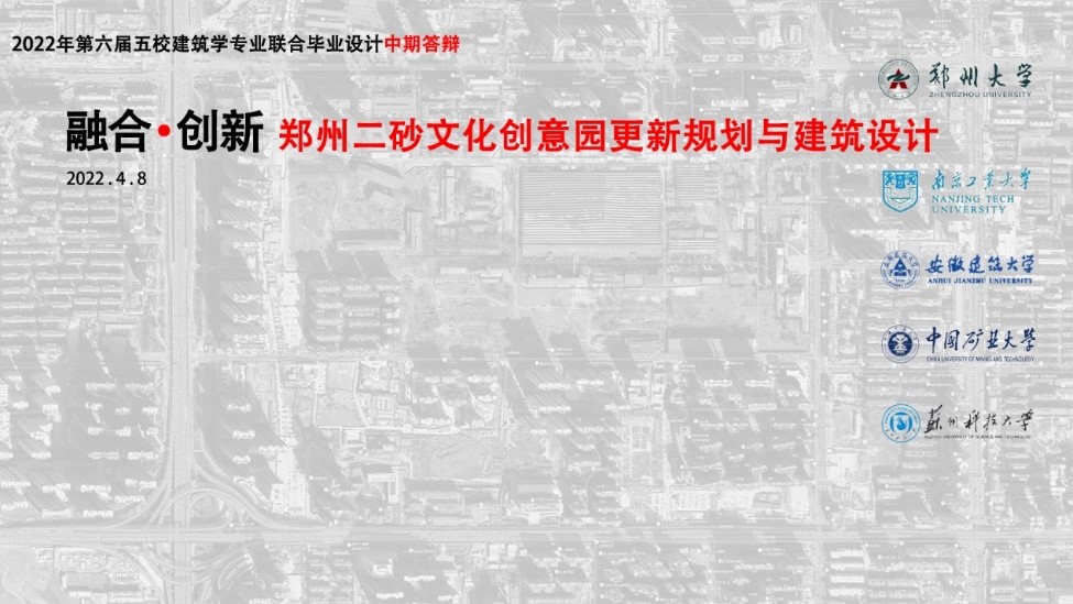 2022年4月8日,主题为“融合·创新——郑州二砂文化创意园更新规划与建筑设计”的2022年第六届全国五校(郑州大学、PA视讯官方网站、安徽建筑大学、中国矿业大学、苏州科技大学)建筑学专业联合毕业设计教学中期答辩由公司组织,以线上形式成功举行。