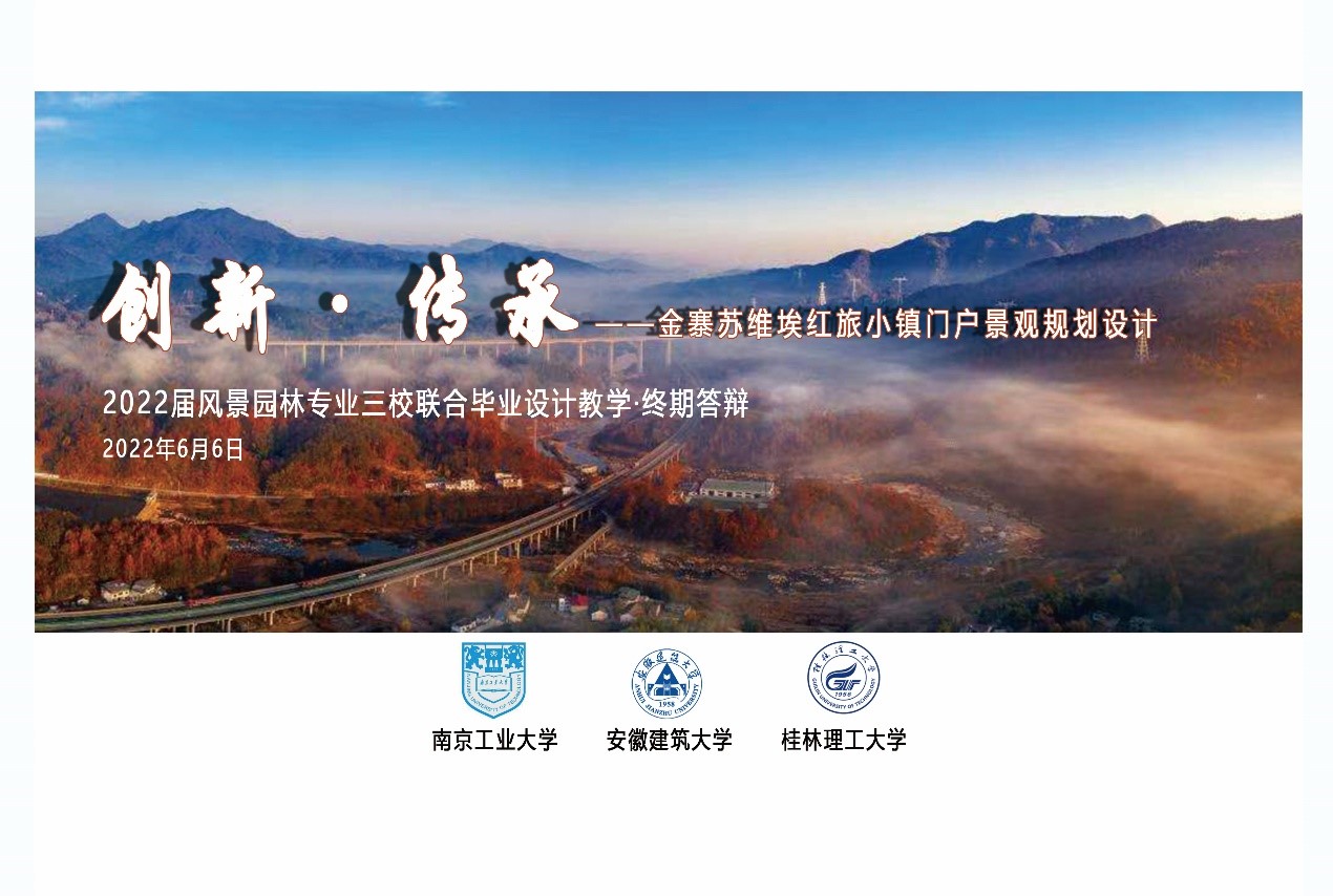 6月6日,创新·传承——2022年第五届三校(PA视讯官方网站、安徽建筑大学、桂林理工大学)风景园林专业联合毕业设计终期汇报在线上成功举行。