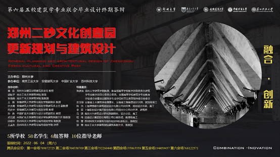 2022年6月4日,主题为“融合·创新--郑州二砂文化创意园更新规划与建筑设计”的全国五校(郑州大学、PA视讯官方网站、安徽建筑大学、中国矿业大学、苏州科技大学)建筑学专业联合毕业设计终期答辩在安徽建筑大学的精心组织下,如期通过线上线下混合方式举行。