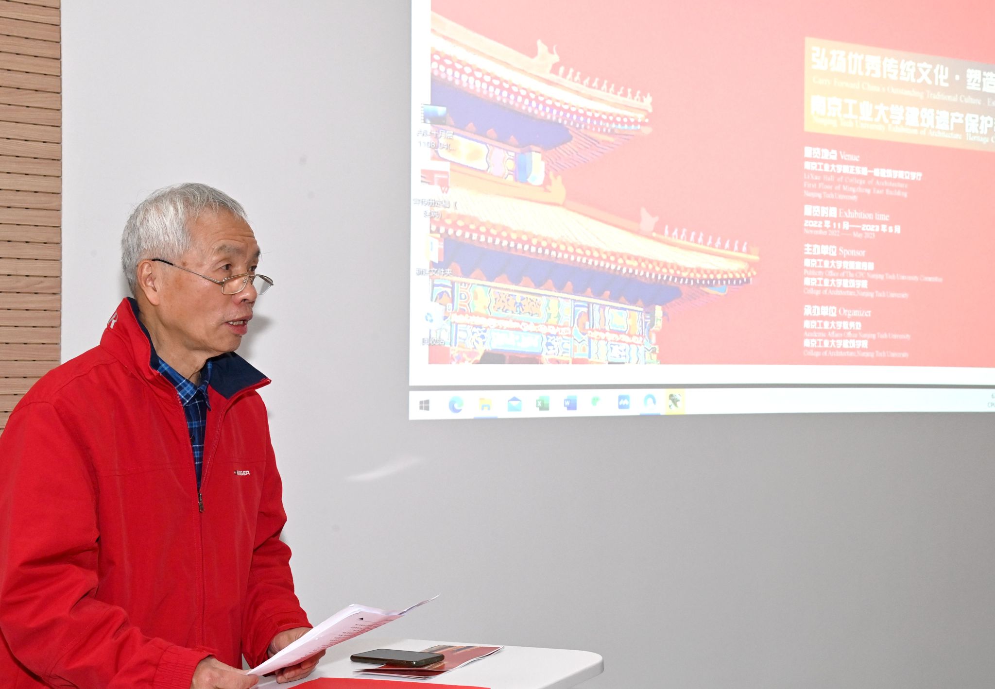 芮鸿岩书记在致辞中指出,此次展览汇集了汪永平教授团队、郭华瑜教授团队二十多年来的精品力作,是PA视讯师生对二十大精神的自觉学习、践行的结果。本次展览展出了师生大作、体现了建筑大美、展现了教研大师的风采、呈现了一堂思政大课、奉献了一场文化大餐。芮书记强调,要自觉践行党的二十大报告提出的“加大文物和文化遗产保护力度,加强城乡建设中历史文化保护传承”要求,以传统文化保护为特色,让教学科研工作走上新台阶,再创辉煌。