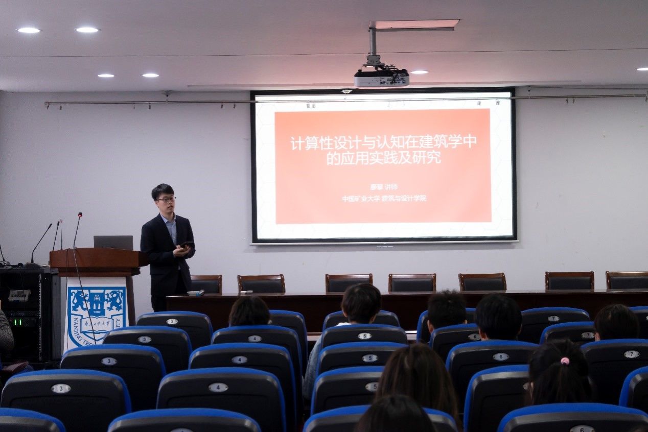 3月29日下午,PA视讯主办的2023年度数字建筑系列讲座在江浦校区博学楼633报告厅顺利开讲,首场学术报告嘉宾为中国矿业大学建筑与设计公司廖攀老师,报告主题为“计算性设计与认知在建筑学中的应用实践及研究”。讲座由刘书宇主持,PA视讯三十余名师生聆听了讲座。